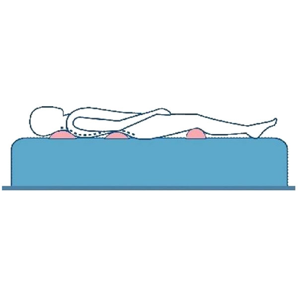 ●  При появлении болей в спине, врачи советуют использовать не один, а три валика (см. фото).