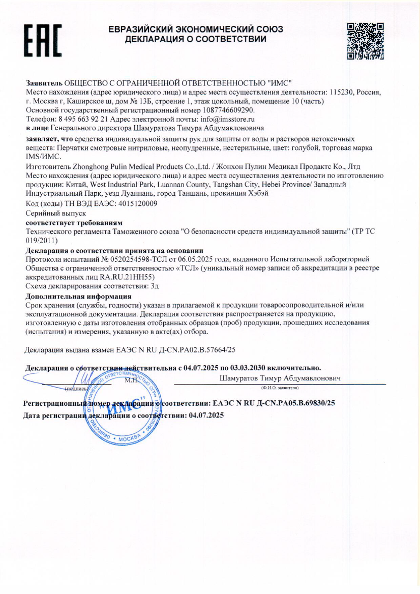 ● Декларация соответствия: ЕАЭС N RU Д-CN.РА05.В.69830/25